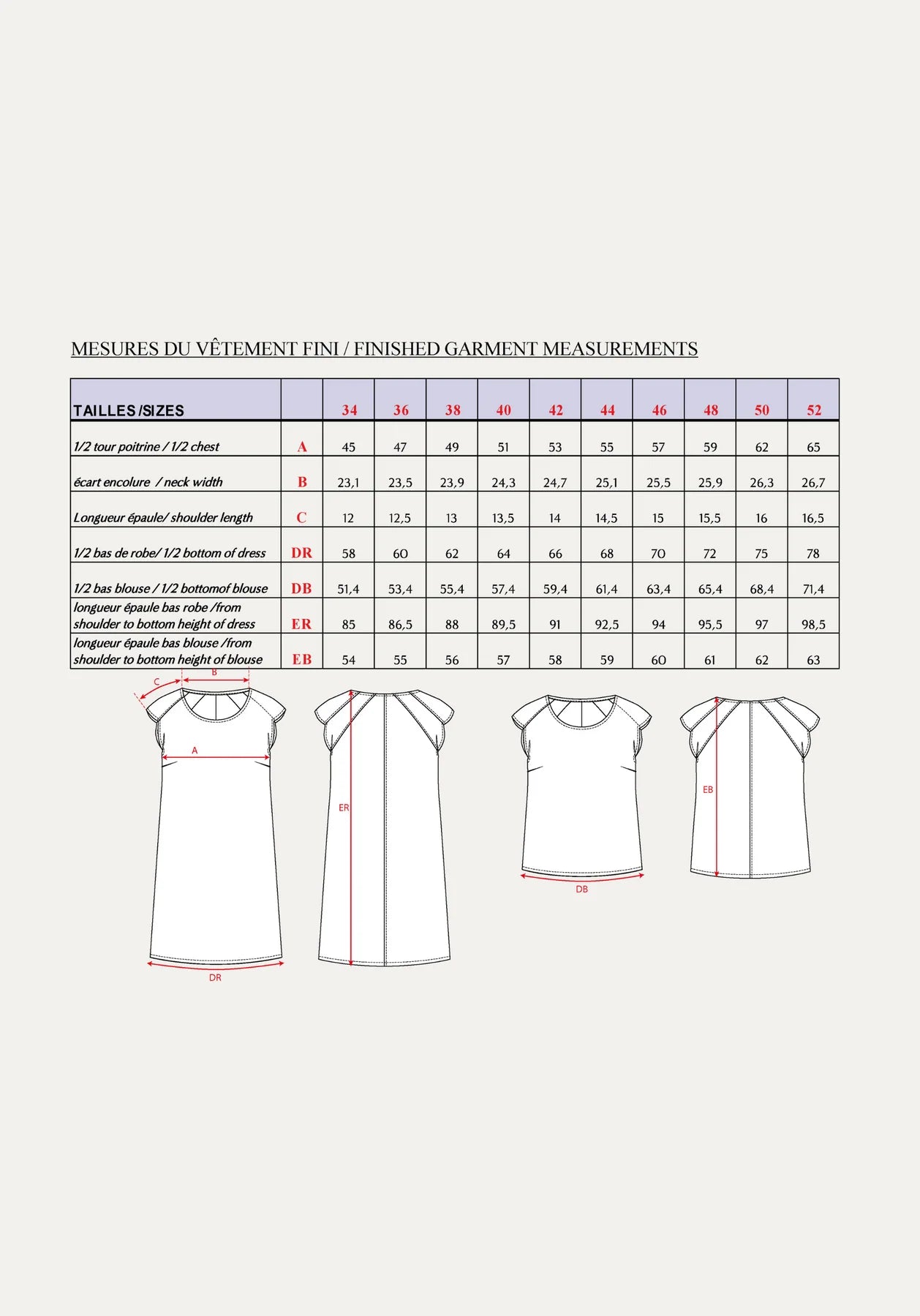 naaipatroon papier met duidelijke handleiding in Engels/Frans